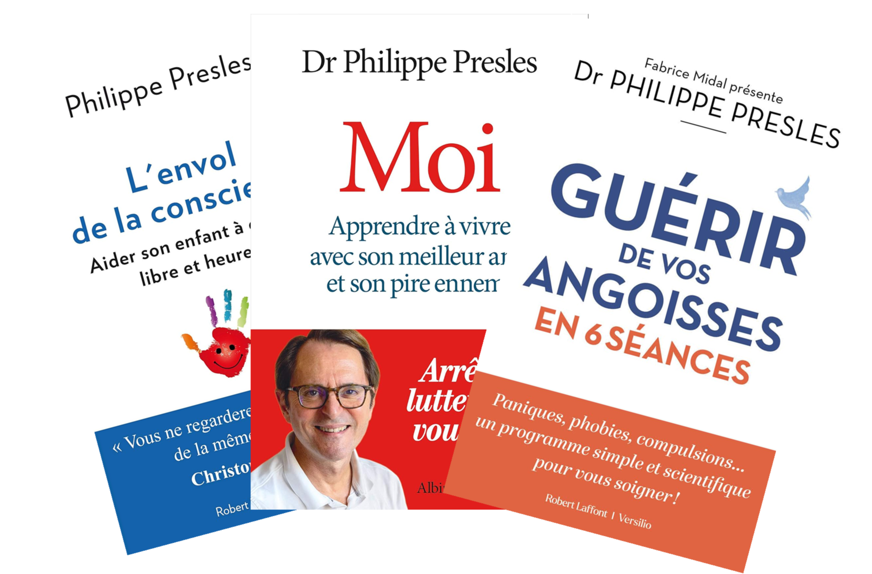 Ces outils, le docteur Philippe Presles les a améliorés et synthétisés dans une méthode simple et extrêmement efficace. Après plusieurs années à la perfectionner en cabinet, il a écrit un livre, Guérir de vos angoisses, pour la rendre accessible au plus grand nombre.